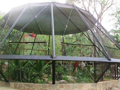 Particularmente, no me gusta ver a los animales en cautiverio, sin embargo si es por fines de conservación de las especies puedo aceptarlo en un mínimo nivel. En el zoo hay muchos animales, a la entrada te reciben las guacamayas.